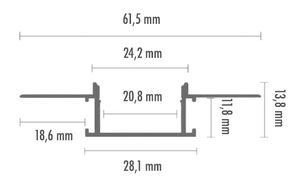 Perfil Alumínio para Embutir em Pladour + Difusor