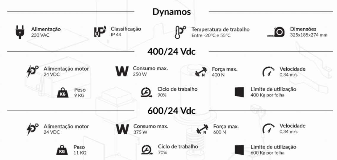 CARACTERÍSTICAS Dynamos 400Kg Dynamos 600Kg
