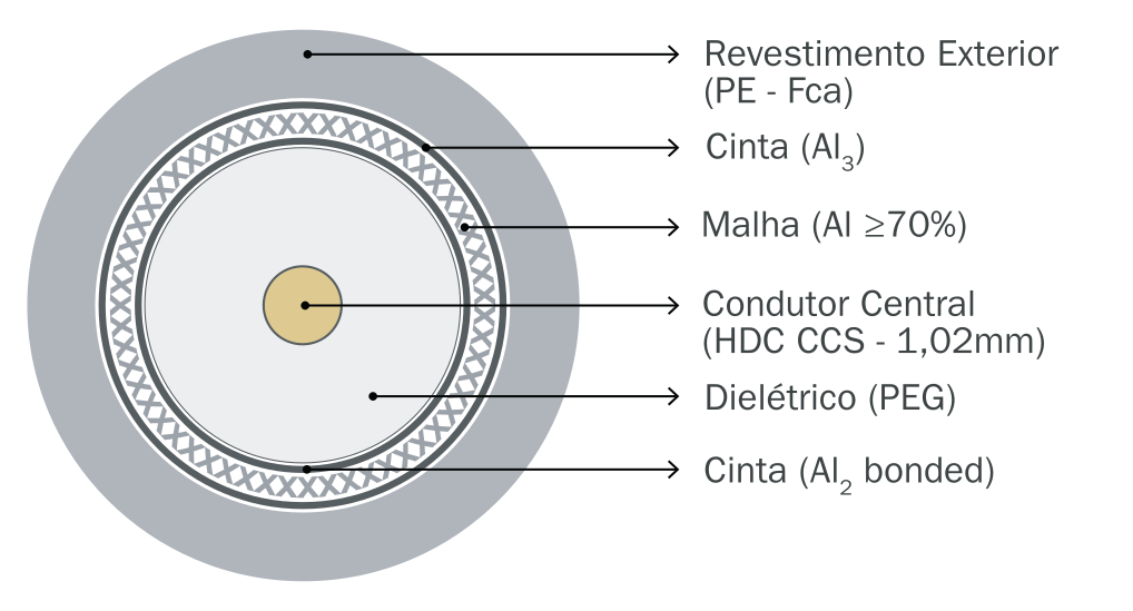 Tri-Shield: Cinta Al2 bonded/Malha AI ≥70% Cinta Al3