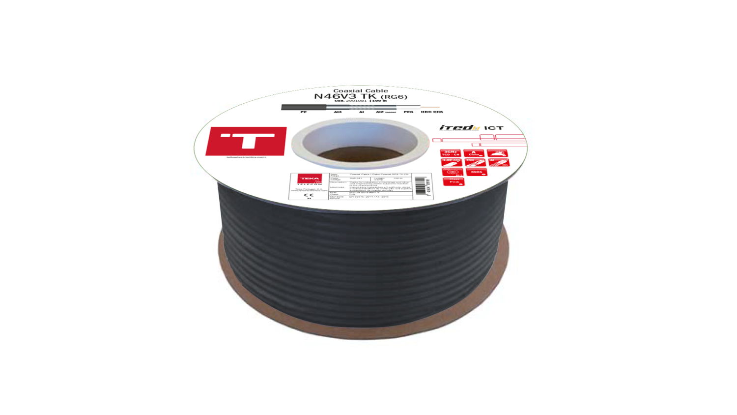 Cabo coaxial RG6 Preto