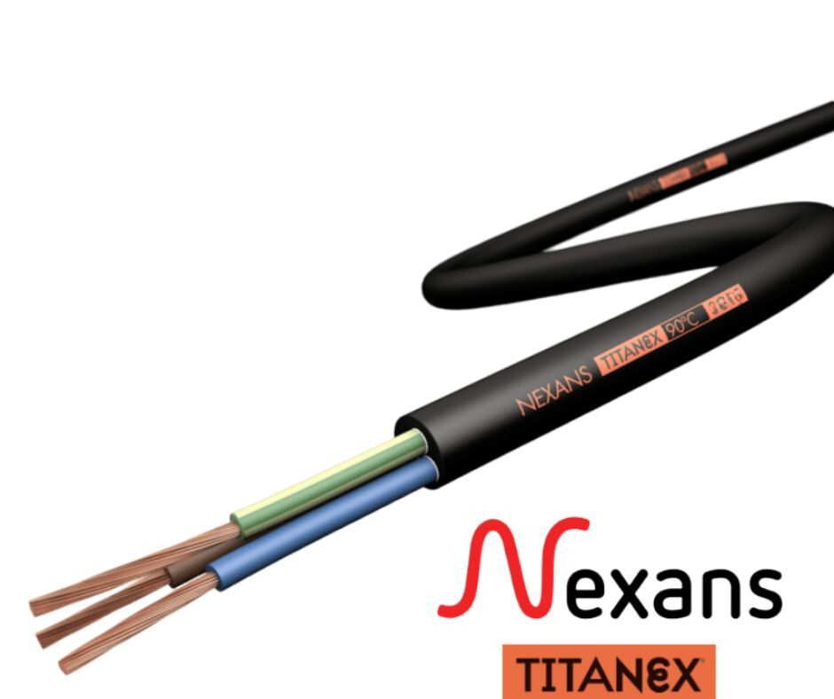 TITANEX, o cabo H07RN-F da Nexans, é um cabo flexível, isolado com elastómero e revestido com um núcleo de cobre.