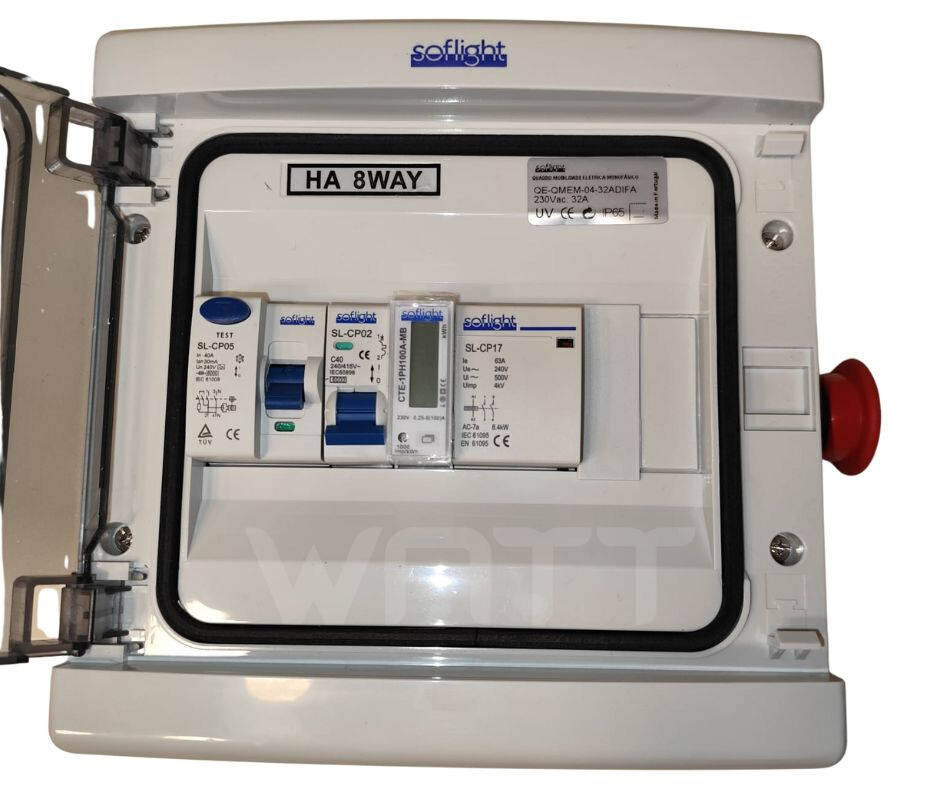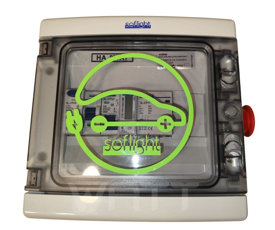 Quadro Mobilidade Eletrica 230V 32A C/ Contador de Energia e Botoneira de Emergência