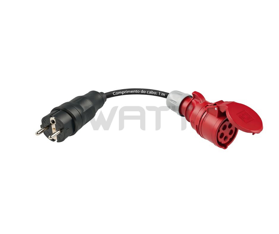 Adaptador com cabo, para EVSE trifásico carragar com energia monofásica.
