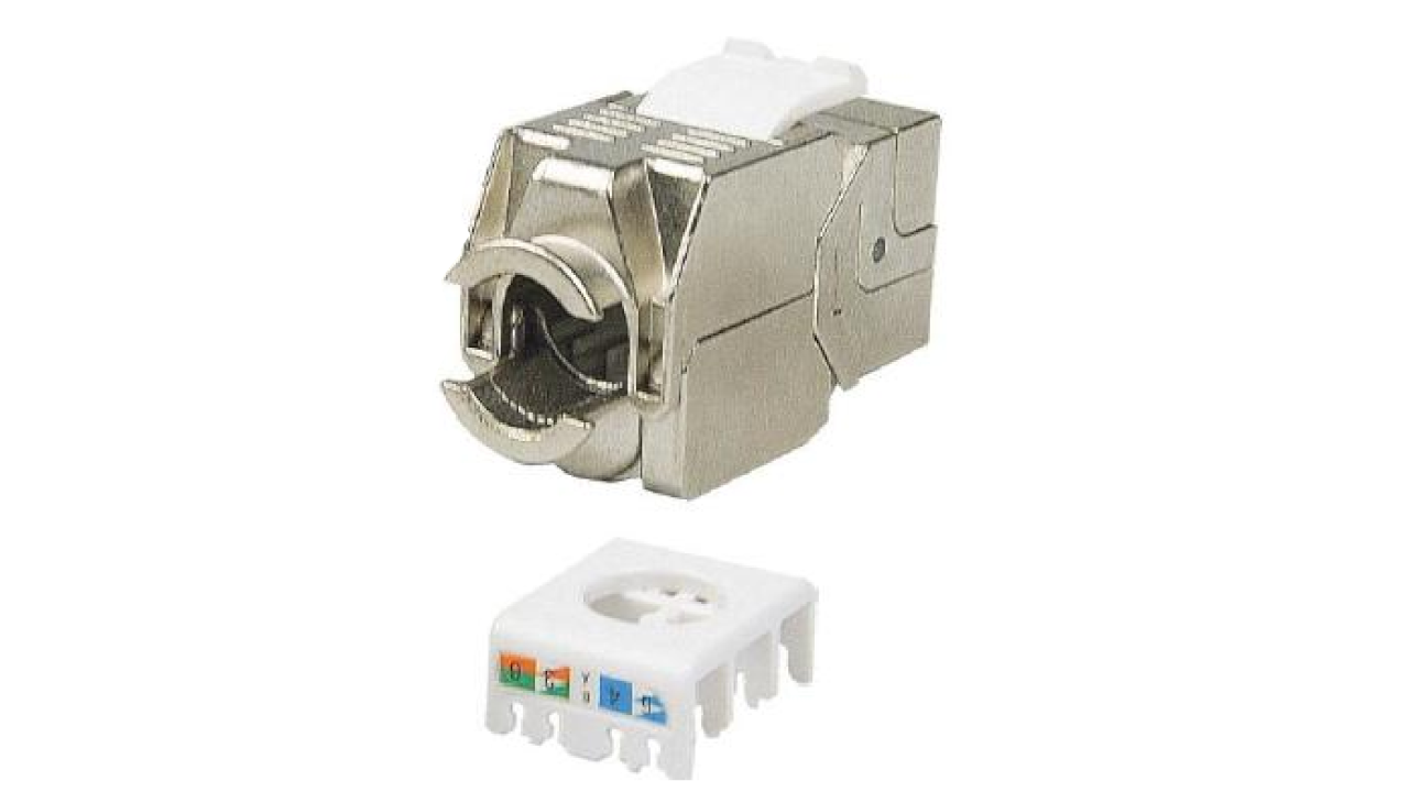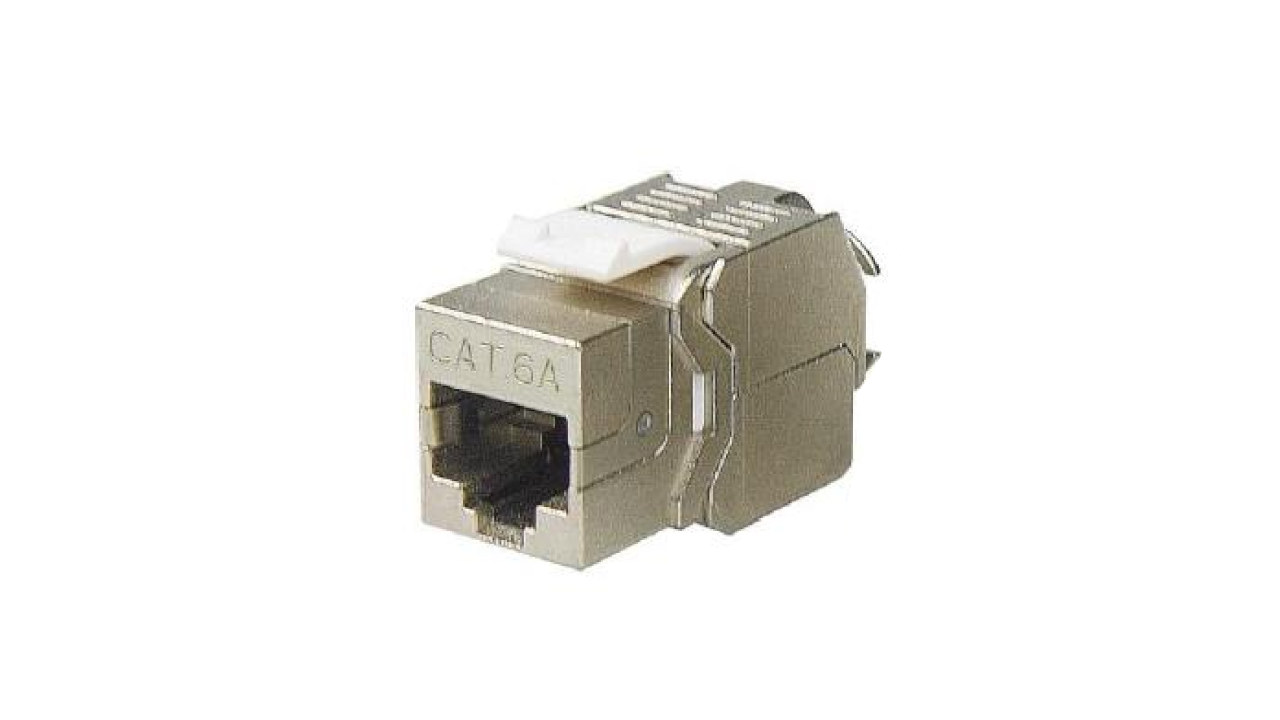 Conector RJ5 Fêmea Cat 6A blindado, com performances até 550MHz, que excede os requisitos da Cat 6A/Classe EA, de acordo com os standards ANSI/TIA-568.2.D, ISO/IEC 11801-1 e EN 50173-1.