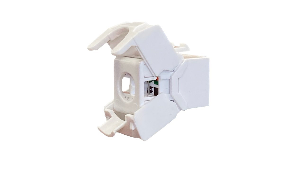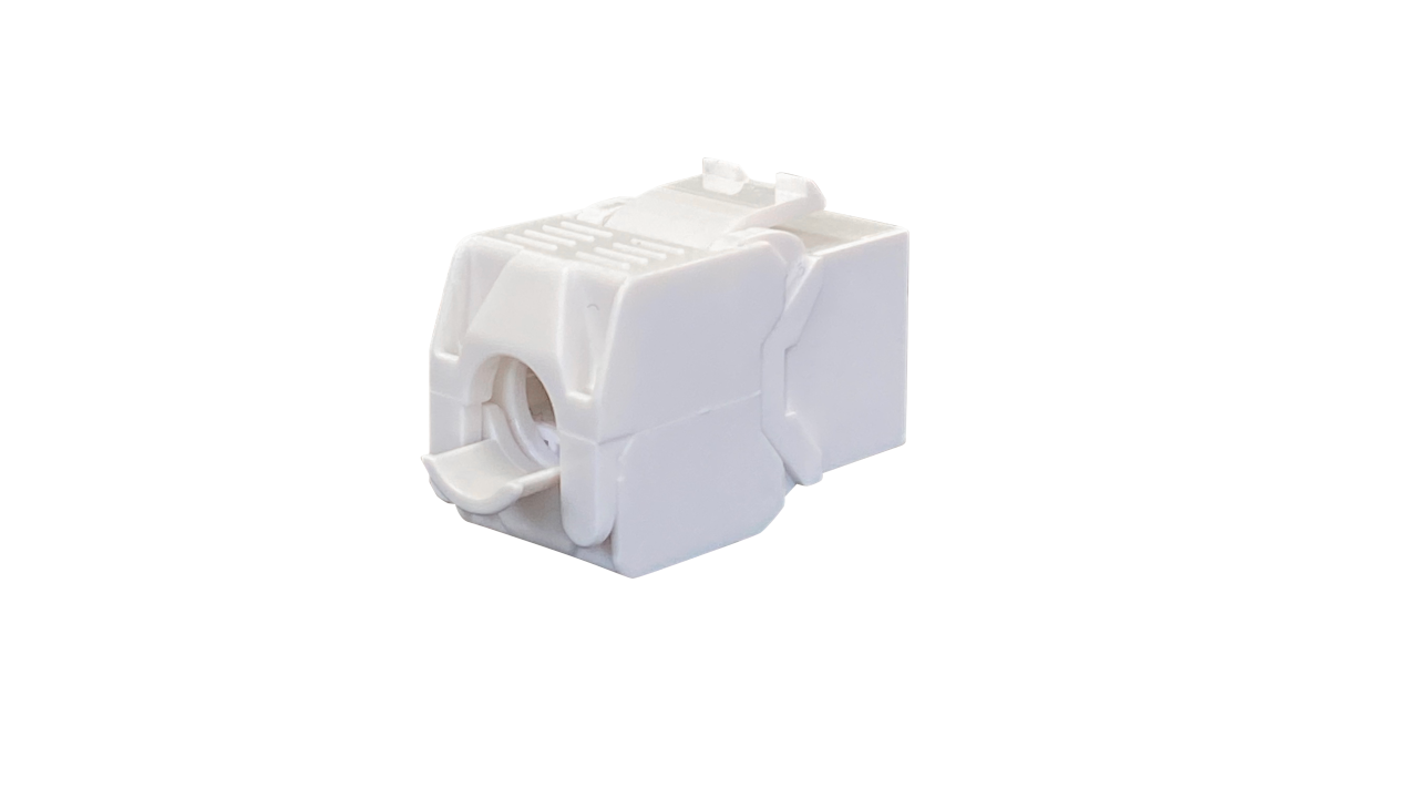 Conector RJ5 Fêmea Cat 6 não blindado, com performances até 350MHz, que excede os requisitos da Cat 6/Classe E.