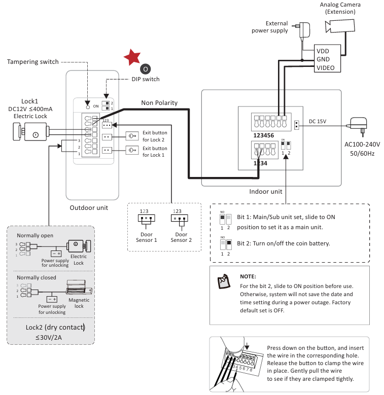 - 2 x saídas de relé (1 x alimenta fechadura até 12 V / 400 mA)