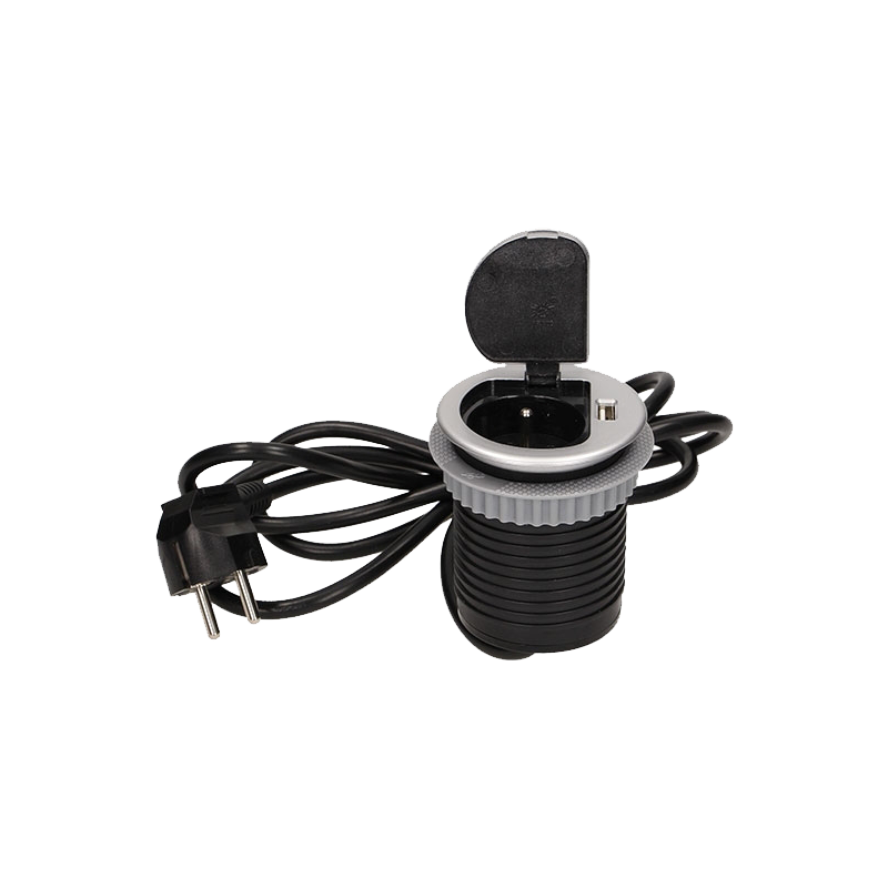 Uma tomada com ligação à terra e diafragmas do circuito de corrente, ligada a um carregador USB numa caixa escondida na parte superior. O dispositivo deve ser instalado em escrivaninhas, balcões, mesas e cantos. Possui uma tampa adicional que protege a tomada contra poeira e um cabo de 1,8 m de comprimento.
