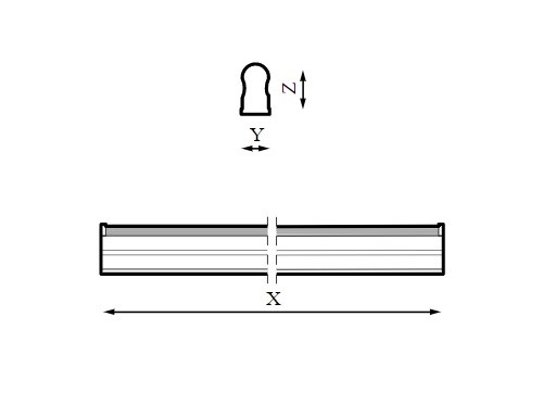 Dimensões: 900 x 25 x 35 (mm) (x-y-z)