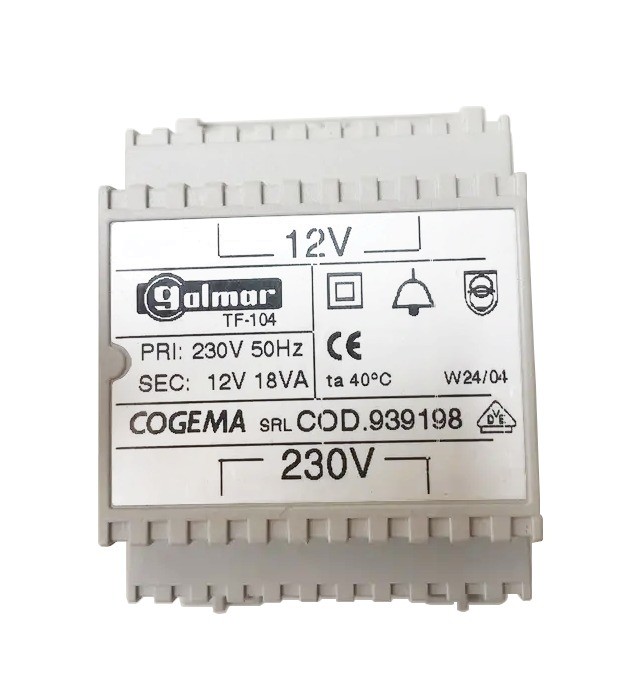 - Saída de 12 V CA. Entrada de 230 Vca / 18 VA.