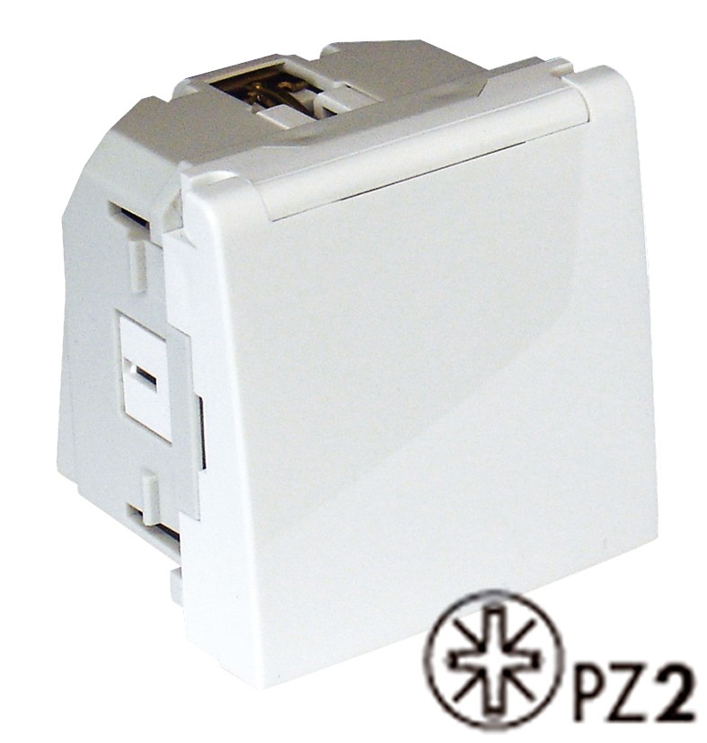 Tomada Schuko com Alvéolos Planos, Tampa e Obturador - 2 Módulos
