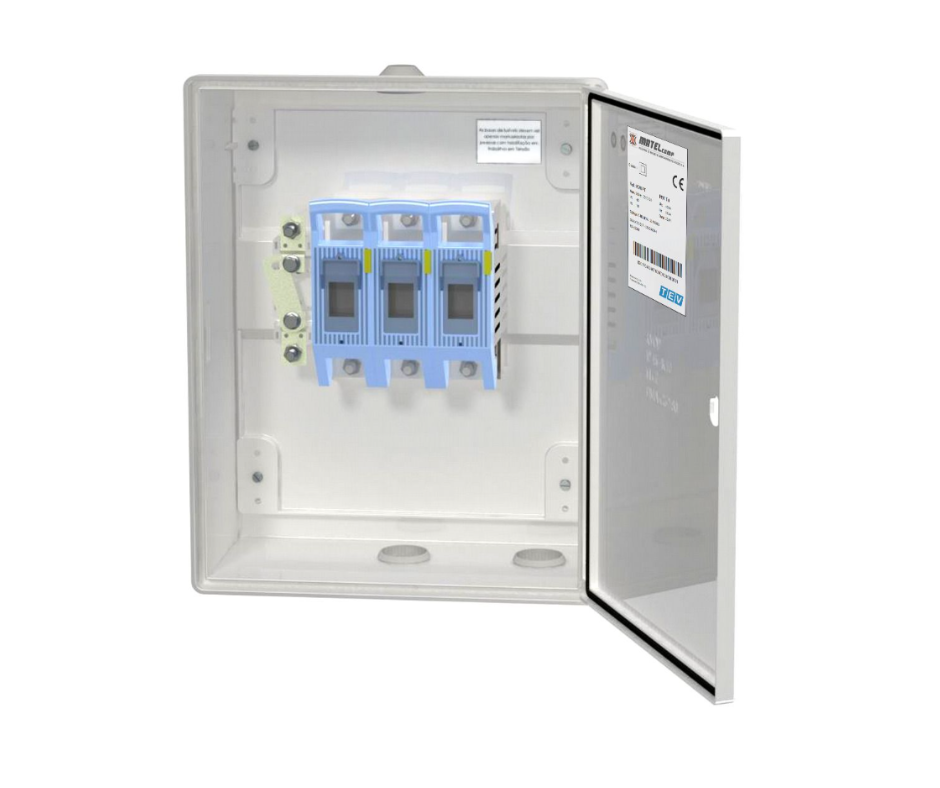 Inclui fechadura triangular, platine, 3 bucins M42, acessório de selagem, 3 interruptores seccionadores fusível (ISF) e 1 base neutro seccionável.