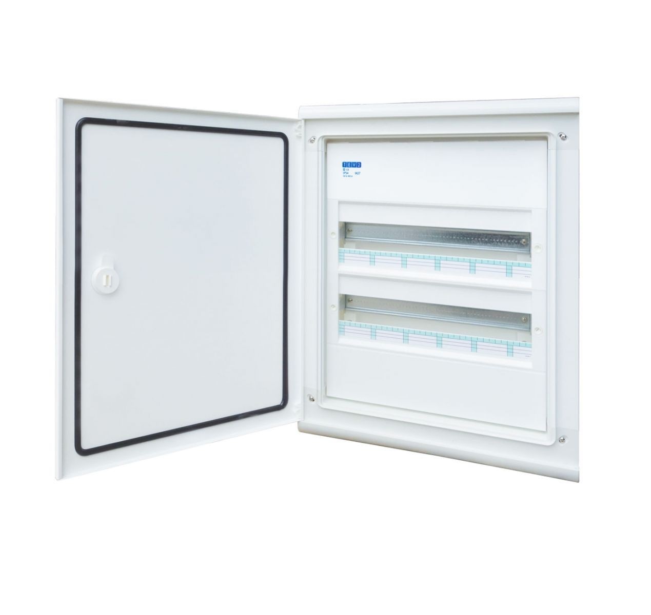 Porta metálica lacada a branco RAL 9010, reversível e com abertura a 180º