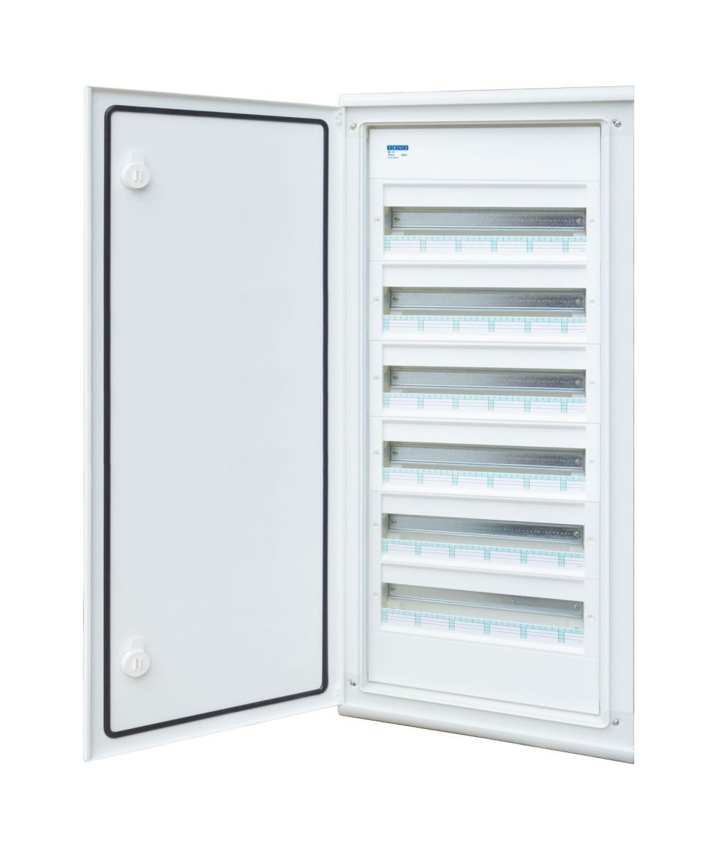 Porta metálica lacada a branco RAL 9010, reversível e com abertura a 180º
