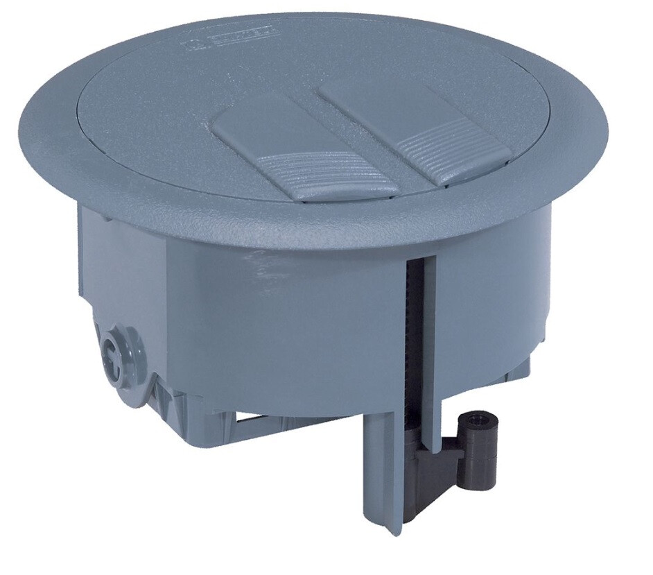 Permite a acessibilidade a todo o tipo de correntes distribuídas pelo chão falso ou de betão (altura mínima 80 mm). Suporte basculante para montagem de mecanismos Mosaic (1 tomada 2P+T tipo Schuko de 2 mód. + 1 tomada RJ 45 de 1 mód.) permitindo modificar o ângulo de inclinação em função da ficha de correntes fortes (direita ou lateral). IK 08. Tampa com 2 saídas independentes para cabos de correntes fortes e correntes fracas. PC/ABS Cinzento RAL 7031. Material livre de halogéneos. As caixas de chão Legrand com as tomadas Mosaic instaladas garantem um IP 24, de acordo com as RTIEBT.