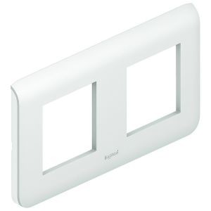 Quadros para o Sistema Mosaic™. Branco (RAL 9003). Montagem por encaixe nos suportes de fixação. Quadro duplo horizontal (para 2 x 2 módulos). Montar com os suportes de fixação ref. 080252/58.