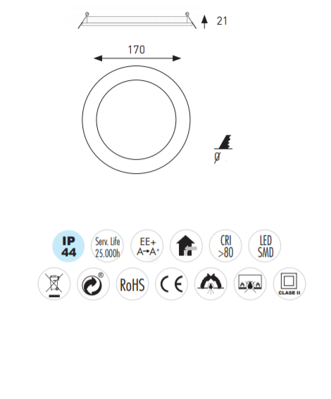 Fluxo luminoso: 3000K 890 lm | 4000K 920 lm | 6000K 960 lm