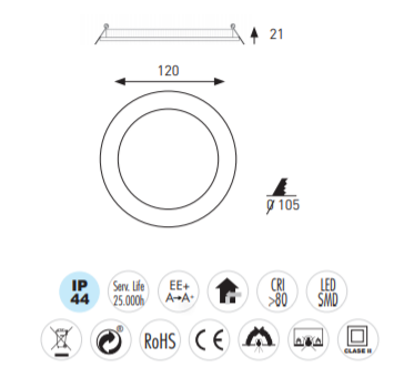 Fluxo luminoso: 3000K 370 lm | 4000K 390 lm | 6000K 405 lm